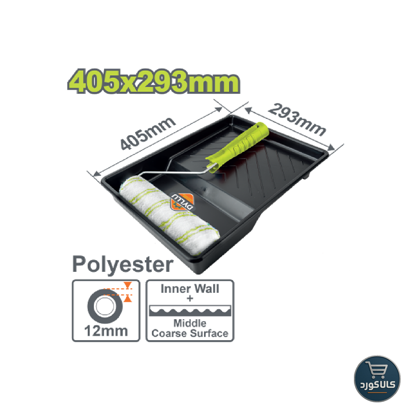 این مجموعه شامل برس استوانهای و سینی رنگ است که برای رنگآمیزی دیوارهای داخلی استفاده میشود. برس پلیاستری با الیاف 12 میلیمتری پوشش یکنواخت و مناسبی ارائه میدهد و سینی رنگ به راحتی رنگ را در دسترس نگه میدارد. این ابزار برای رنگآمیزی سطوح بزرگ و صاف داخل ساختمان بسیار مناسب است.